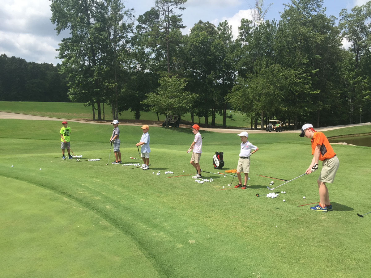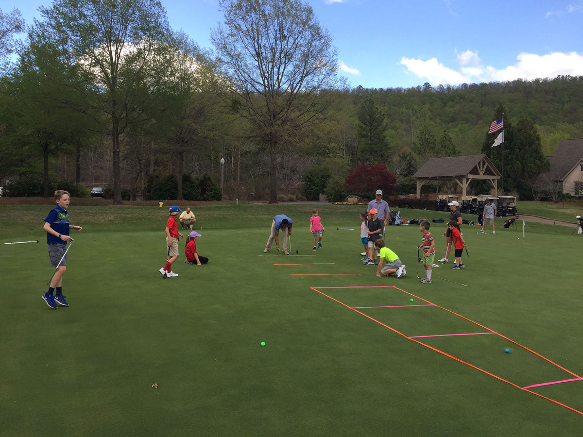 There are five classes after school on Thursday or Sunday afternoon depending on age group, with two on-course match dates. The on- course matches are scaled to each individual to promote scoring as players will work to meet individual scoring goals in 9 hole segments ranging from 35 yards to a forward tee box. Each match varies in format and parents are responsible for transporting players via cart during match play.
